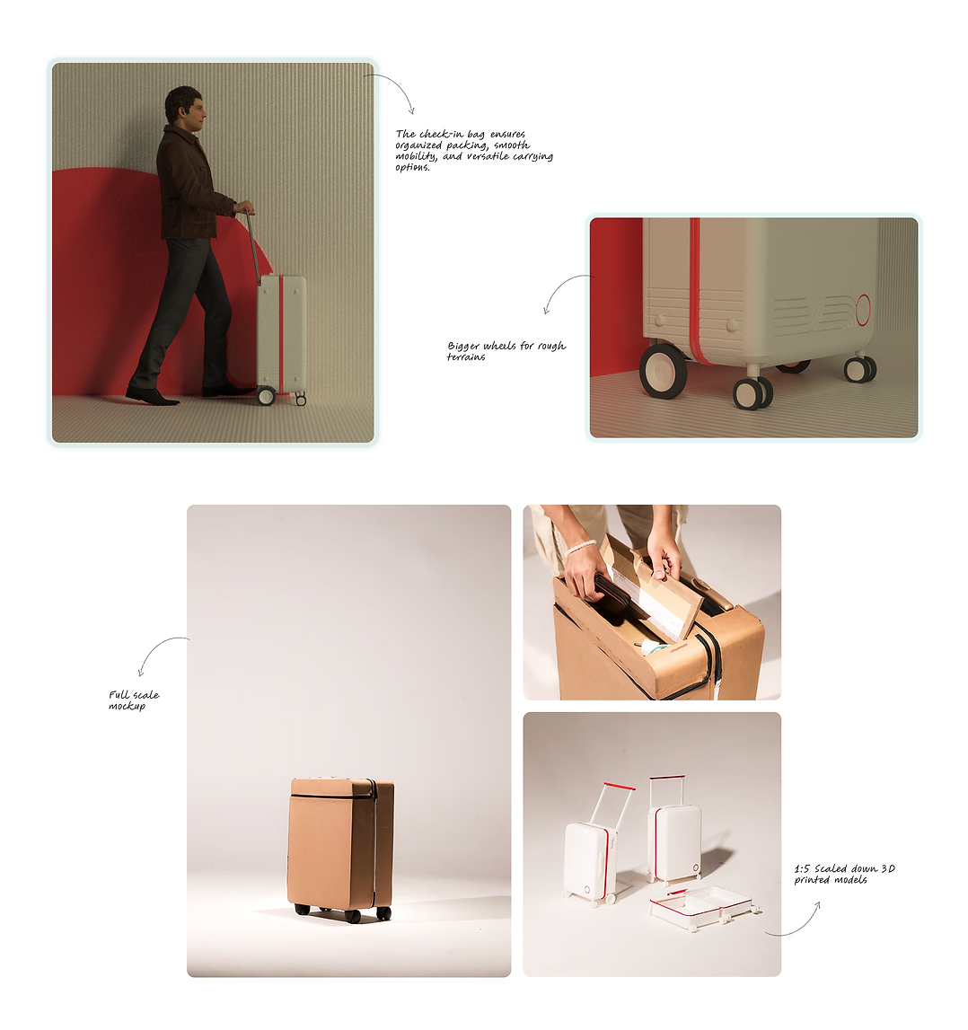 The final concept includes a set of cabin and check-in bags designed to enhance the travel experience through functionality, organization, and ease of mobility.